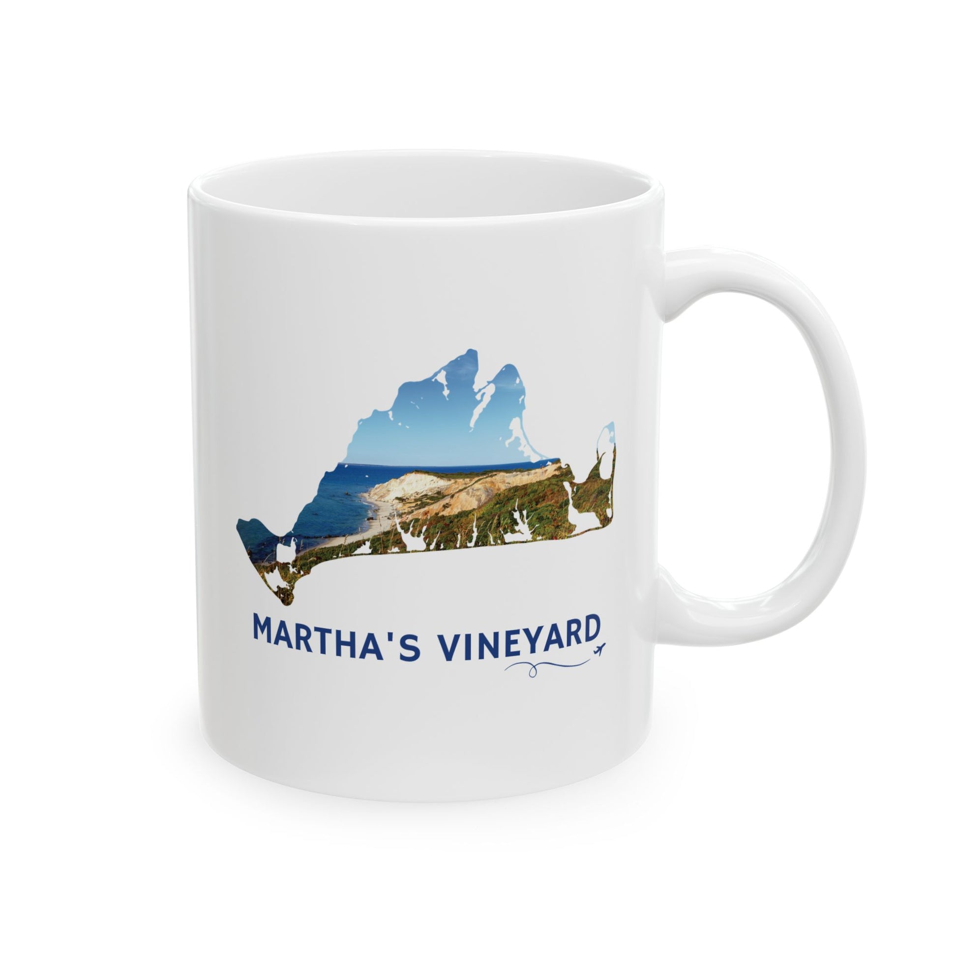 Bring the breathtaking beauty of Martha’s Vineyard to your daily routine. This ceramic mug features the island’s iconic outline filled with a stunning view of the Aquinnah Cliffs and ocean, capturing the peaceful charm and coastal colors that make the Vineyard unforgettable.