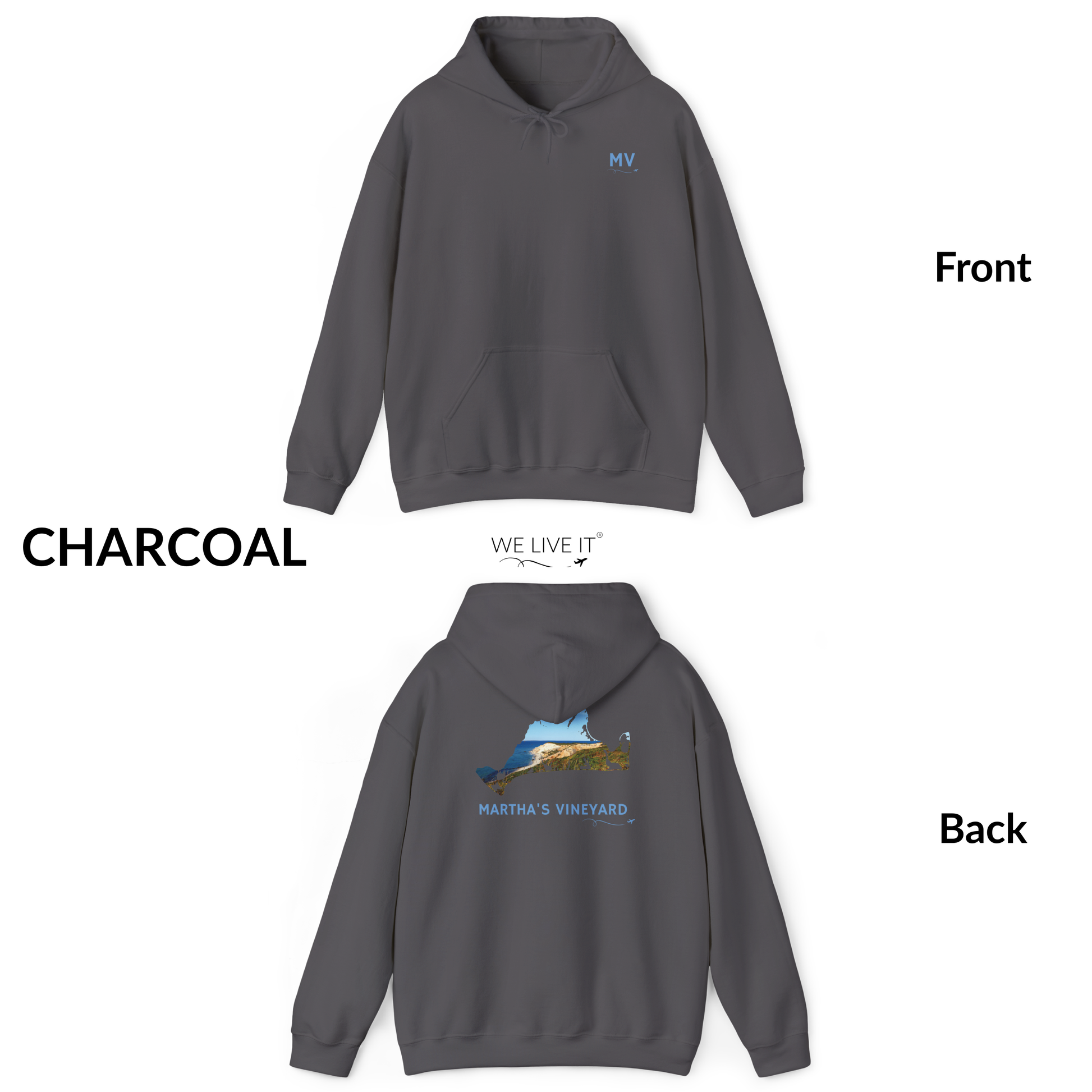 Martha’s Vineyard Hoodie | MV Chest & Aquinnah Cliffs Outline Back Design